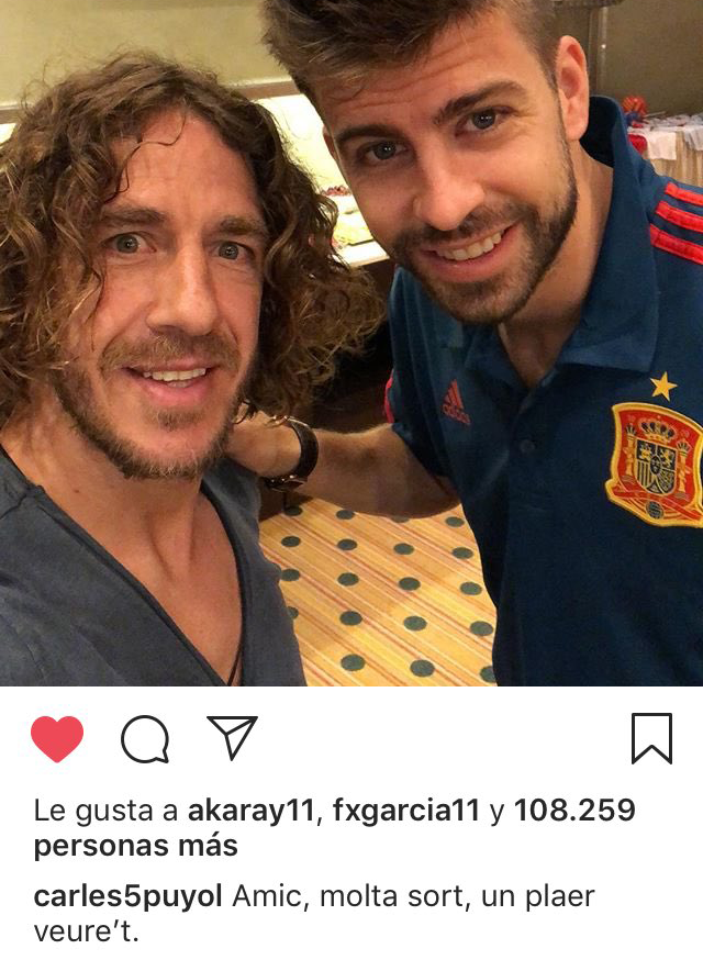 En una foto penjada a Instagram on la llegenda culer desitja sort a Gerard Piqué amb el text “amic, molta sort, un plaer veure't”, un usuari li retreu que ho hagi escrit en català: “Eres un crack y siempre te respeto. Pero escribir el encabezado de la foto en catalán me parece una falta de respeto para los seguidores que te seguimos y no somos catalanes que somos muchísimos. En español lo hubiésemos entendido todos…”.