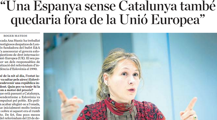 Stanic explica que en cap cas es pot al·legar que el dret internacional consideri il·legal la Declaració Unilateral d’Independència, perquè no contempla el dret a la secessió, però tampoc la prohibeix. Pel que fa a la suspensió de l’autonomia en aplicació de l’article 155, l’advocada recorda que la constitució explicita que es podrà aplicar l’article “per interès general” i es pregunta si és d’interès general mantenir la unitat d’Espanya i afirma que aquest argument no és utilitzat en el dret internacional.