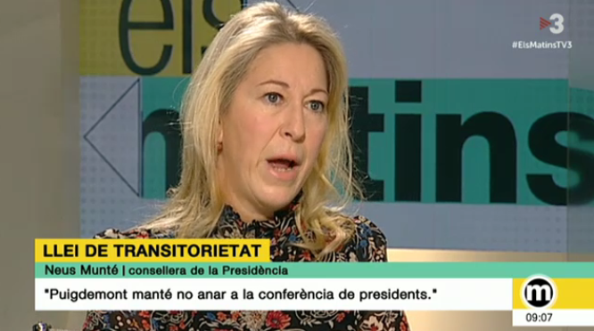 Munté ha estat molt clara i ha dit que sense pressupostos s'acabarà la legislatura i hi haurà eleccions, tal com va avançar Carles Puigdemont. Això sí, ha explicat que “tothom vol millorar els pressupostos però hem de ser conscients del context i de les limitacions que se'ns imposen” en un clar missatge cap a la CUP. “No ens podem permetre no disposar de pressupostos en un moment tan crucial” ha afegit traslladant la pressió als anticapitalistes. Per acabar, ha conclòs que “estic convençuda que són uns bons pressupostos dins uns marges suficients i justos”.