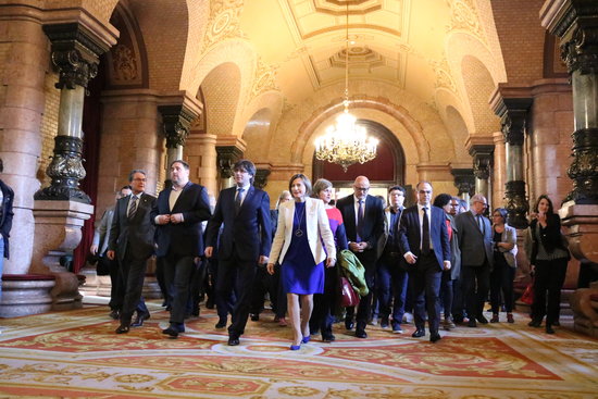 La comitiva, encapçalada per Puigdemont i Junqueras