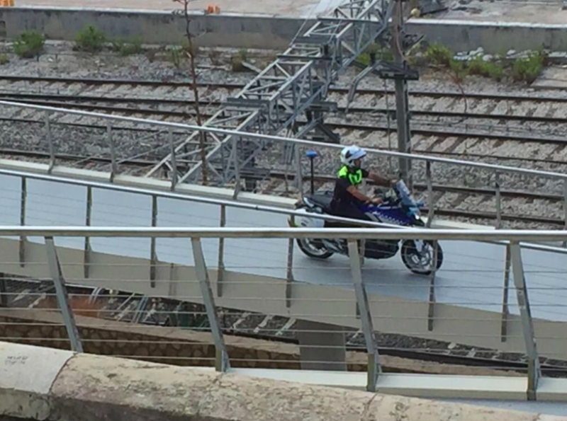 El regidor d'ERC Tarragona, Pau Ricomà, ha denunciat a través de twitter que una agent de la Guàrdia Urbana passejava pel pont pujat a la seva moto, quan en principi per aquesta nova passarel·la només hi poden circular vianants i bicicletes.