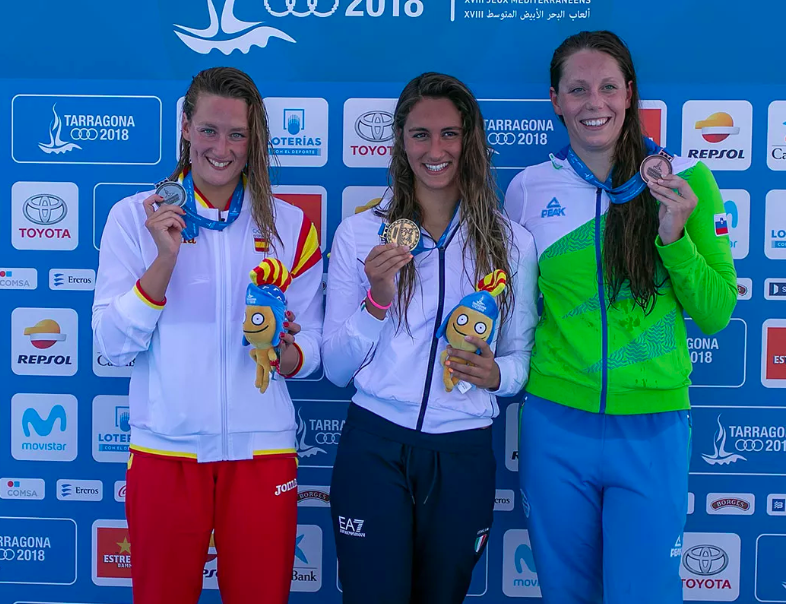 esprés de minuts d'espera, la nedadora Mireia Belmonte ha decidit fer ella mateixa l'entrega de les medalles.