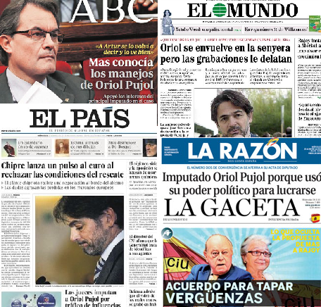 Un exemple clar el troben en un digital econòmic de Catalunya dirigit al sector empresarial que titulava: “Pujol disposat a buscar un acord polític amb Rajoy i al fet que es rebaixi la pressió sobre els seus fills”. La notícia d’economia digital del 19 de novembre, en ple debat de la pregunta i la data, anunciava que el president Pujol “estaria disposat a una intervenció pública reclamant un cert pas enrere”, a canvi de reduir la pressió judicial sobre Oriol Pujol, i afirmava que “fonts judicials asseguren que el procés sobre l'anomenat cas ITV, pel qual es va imputar a Oriol Pujol, es troba paralitzat des de fa unes setmanes. Les mateixes fonts destaquen la poca voluntat del Tribunal Superior de Justícia de Catalunya per aprofundir en el sumari. Estarien, per tant, a l'espera d'alguna decisió política.” La informació parla per si sola.