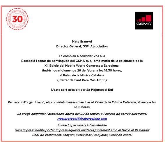 Codi de vestimenta per l’acte real: senyors vestit fosc, senyores vestit de còctel