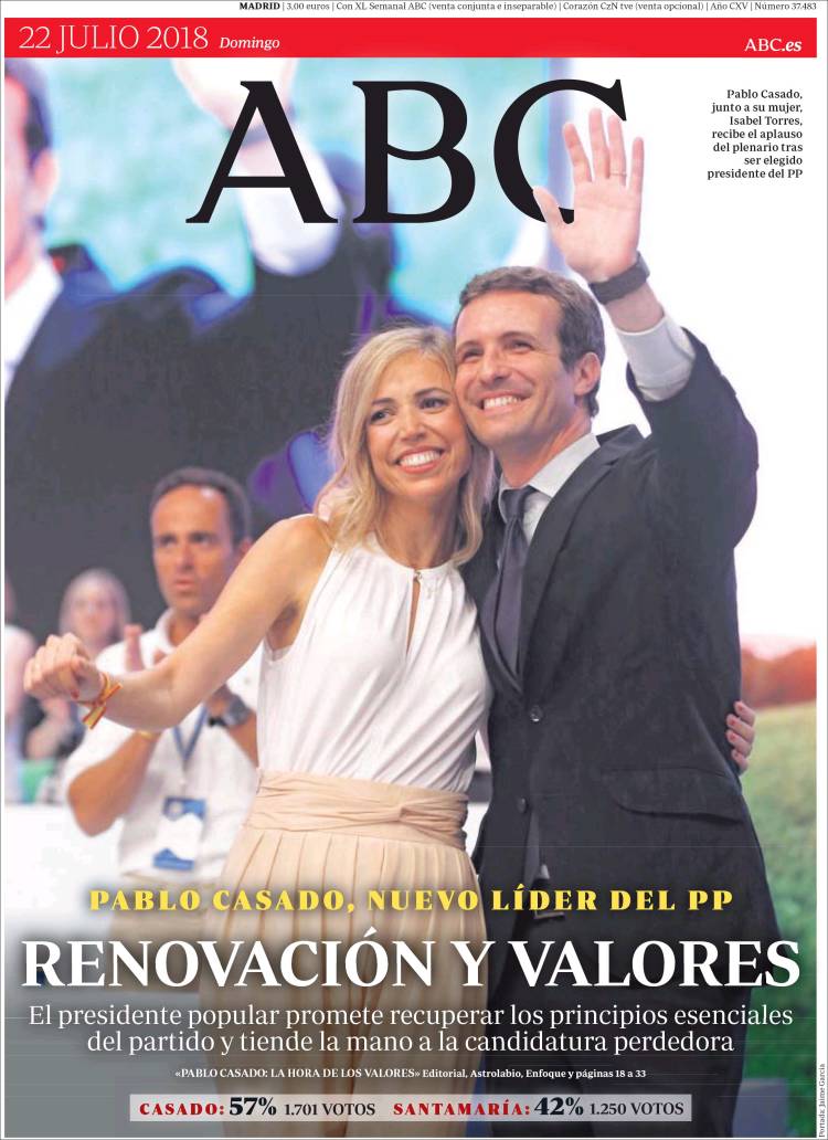 Per la seva banda, El País, El Periódico i La Vanguardia destaquen el gir conservador del nou líder del PP. “El PP da un giro conservador con la elección de Pablo Casado” titula El País. El Periódico parla d'un “Gir (més) a la dreta” i La Vanguardia recull que “Casado dirigirà el PP cap a la dreta”. Els dos rotatius catalans també posen en primera plana l'adéu de Marta Pascal del PDeCAT.