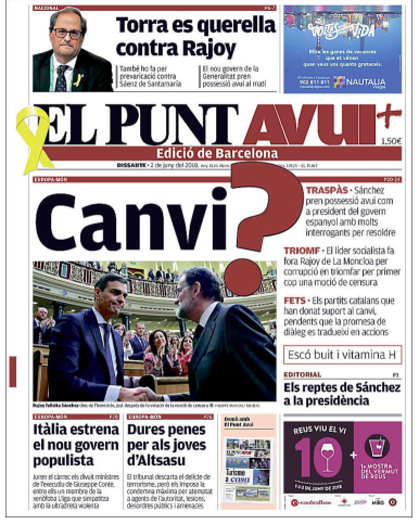 Ara: “Pedro Sánchez, nou president espanyol”.