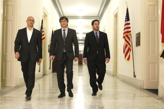 El president de la Generalitat, Carles Puigdemont, es va reunir ahir dimarts amb tres congressistes dels EUA –dos republicans i un demòcrata- per parlar del procés. La trobada, feta amb la màxima discreció, s'ha fet sense que el president ni el seu equip fessin públics els noms dels polítics nord-americans amb els que s'han vist per evitar hipotètiques accions de la diplomàcia espanyola que dificultessin les reunions.