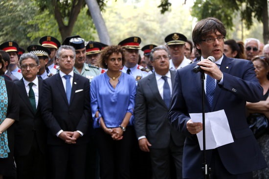 El president de la Generalitat, Carles Puigdemont, s'ha afegit a entonar aquest perdó: “Algunes vegades, potser massa, heu sentit que no hem estat a l'alçada de les circumstàncies i no hem sabut respondre a les vostres necessitats, no només de diners, sinó de reconeixement, d'escalf, de sentir que algú podia empatitzar amb el vostre dolor”. Diversos assistents han escridassat Puigdemont a l'inici de la seva intervenció amb 'Viva España' i 'golpista', entre altres improperis.