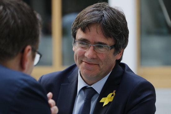 “No sé si trigaré 20 anys a trepitjar sòl espanyol, però sé que no trigaré 20 anys a trepitjar territori català”. Així de contundent s'ha mostrat Puigdemont en ser preguntat per la seva situació judicial a Espanya, tot recordant que pot viatjar a Catalunya però “seria la part francesa”.