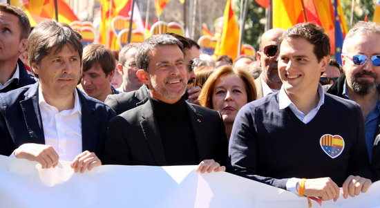 Très bien monsieur @manuelvalls Par contre, cela ne vous gêne pas manifester avec la droite et l'extrême droite espagnole à Barcelone, n'est-ce pas? pic.twitter.com/RPNEXD71CR