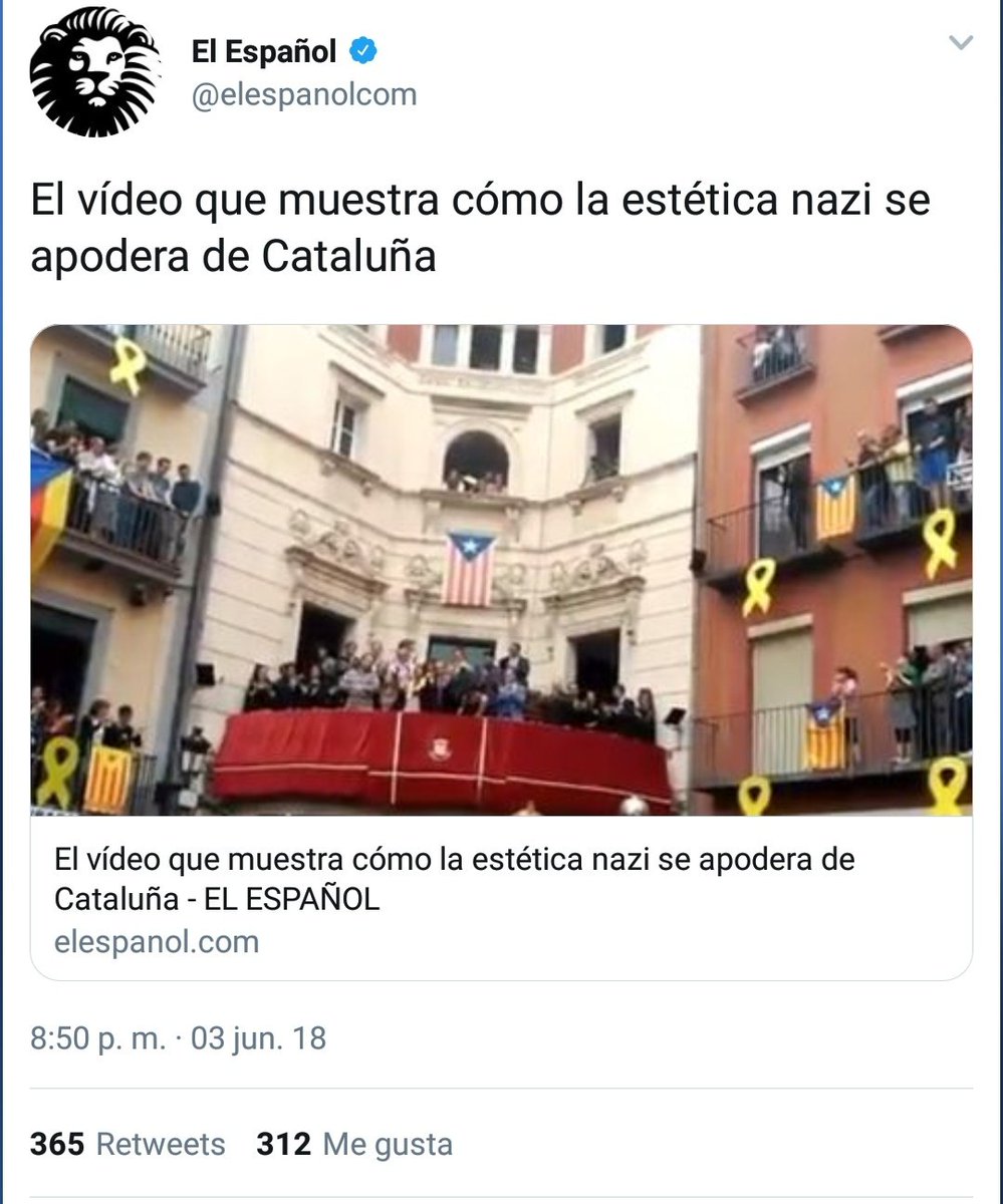 Les imatges a les quals fa referència van ser gravades durant la festa popular, concretament, en una plaça de la Patum plena de gom a gom i des d'on els ciutadans van entonar 'Els Segadors'. I, en un moment en que Catalunya compta amb presos polítics i exiliats per la repressió de l'Estat, també va haver-hi lloc per a la protesta i la reivindicació: cartells grocs amb el lema “Llibertat presos polítics”, llaços grocs i altres mostres de suport contra aquesta injustícia és el que ha semblat als periodistes de 'El Español' digne de ser titllat de ''nazi''. Un terme que l'espanyolisme ha banalitzat molt en els darrers temps.