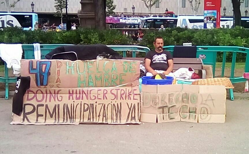 Un activista d'#AcampadaXDrets (BCN) a punt de superar el tercer rècord de vaga de fam a l'estat amb 49 dies, marejos, infecció d'orina i danys al ronyó comencen a ser els efectes col·laterals.