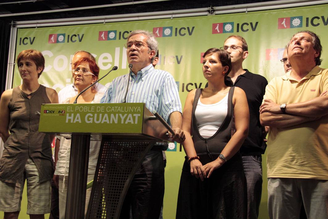 Joan Saura ha comparegut davant els mitjans de comunicació acompanyat per la direcció del partit, entre ells l’actual secretari general, Joan Herrera, el vicepresident del partit Jordi Guillot i al president del grup parlamentari, Jaume Bosch, les tres úniques persones a les quals aquest divendres el president d’Iniciativa havia comunicat la seva decisió de no tornar-se a presentar com a candidat a les pròximes eleccions catalanes previstes per al 2010.