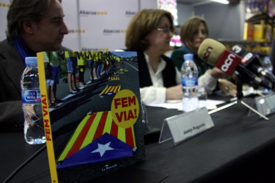 Acompanyada de l'escriptora Patricia Gabancho i de l'actor Juanjo Puigcorbé, Forcadell ha repassat les imatges de “l'èxit” de la Via Catalana i ha subratllat que encara hi ha un repte més important per als catalans: “la independència”.