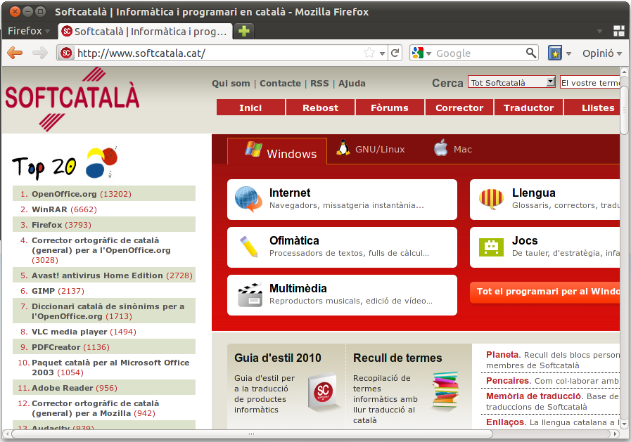 Els 20 programes amb més èxit a Softcatalà han estat els següents (indiquem entre parèntesis el total de descàrregues):