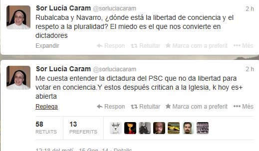 Sor Lucía Caram fa uns mesos va assegurar que “s’ha de consultar als catalans sobre el seu futur, ja no hi ha marxa enrere”.