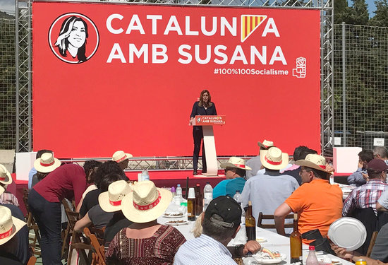 La presidenta d'Andalusia i candidata a les primàries del PSOE, Susana Díaz, durant la seva visita a Catalunya enmig de l seva campanya interna, i des de Sant Boi de Llobregat ha pronosticat que el seu resultat en vots el dia de les eleccions internes a Catalunya serà més alt que el nombre d'avals que ha aconseguit, i que la van situar molt per sota de Pedro Sánchez. “M'atreveixo a dir que el numero de suports i de vots que tindré serà a Catalunya superior al d'avals. Estic convençuda, per les reaccions de les ultimes 48 hores”.