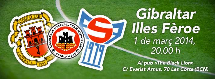 La penya “Catalan Bay” ha creat un esdeveniment al facebook, i demanen als seus seguidors que confirmin la seva presència ja que les places són limitades. Segons diuen els organitzadors consideren l’esdeveniment singular a Barcelona. “La penya “Catalan Bay” de supporters a la selecció de futbol de Gibraltar, primera en constituir-se al món mundial fora del territori de “la Roca” (Commonwealth, inclosa) us convida a una trobada molt especial. El proper dissabte 1 de març, a les 8 del vespre (GMT+1), es disputarà el segon partit de futbol oficial de la selecció de Gibraltar (GFA), aquest cop contra la selecció nacional de les Illes Fèroe (FSF). Un combinat que compta amb prou experiència en competicions oficials ja que, tot i ser d'una nació-arxipèlag sense estat, la seva metròpoli a Dinamarca és sensata i els deixa jugar en partits internacionals des de 1988 (FIFA) i 1990 (UEFA). Tot i així, les ganes de Gibraltar de menjar-se el món i guanyar-se un lloc al proper campionat europeu, faran d'aquest matx una apassionant disputa de resultats imprevisibles”.