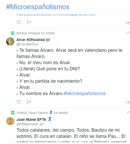 Twitter s'ha omplert de piulades amb aquesta etiqueta on diversos usuaris han explicat algunes situacions que han viscut on s'han sentit discriminats, insultats i menyspreats per parlar català.