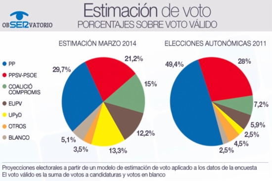 La suma d'aquestes tres forces polítiques suposa un 48,4% dels vots, segons aquesta enquesta i seria superior a la suma dels suports que reben populars i UPyD (43%). La suma entre el PSPV-PSOE i UPyD seria del 44,5% mentre que la suma entre Compromís i EUPV suposaria el 27,2%.
