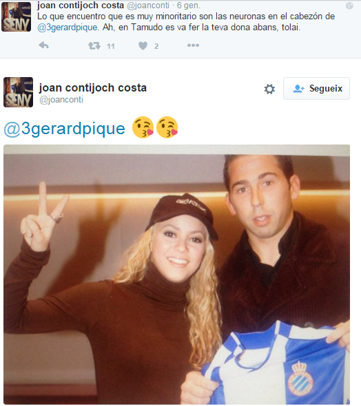 En un segon tuit, Contijoch va afegir una foto on es pot veure a Shakira i al exdavanter Raul Tamudo junts amb una samarreta de l'espanyol.