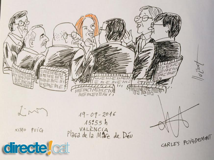 Aquesta trobada valorosa també guarda una anècdota històrica que ens ha deixat un preat document. El dibuixant Lluïsot quan va seure a taula d'una terrassa a la Plaça de la Mare de Déu va veure que al costat hi tenia uns comensals inusuals: els presidents de Catalunya i el País Valencià. No va pensar-s'ho dues vegades i va començar a fer un dibuix del qui compartien l'àpat. En acabar, decidit, els va mostrar la caricatura i els dos mandataris els va encantar. Tant és així que el dibuix està signat per ells mateixos. Tenint en compte la transcendència de la trobada, podríem dir que és un document preciós que es podrà exposar per recordar aquest punt d'inflexió de la política dels Països Catalans.
