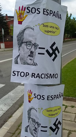 Torra apareix amb un bigoti de l'estil del dictador alemany: “Som una raça superior”.