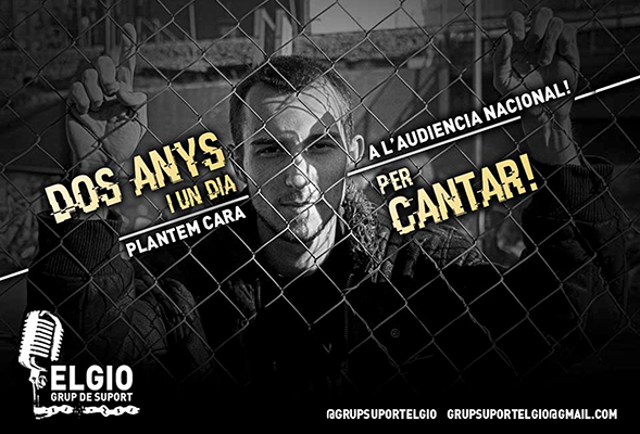 La cançó d'Elgio 'Riesgo abstracto' assegura que l'acusació està basada en “mentides inventades” i que la veritable violència és el finançament de les guerres d'Afganistan, Síria o Gaza. “Si una cançó us sembla violenta no vulgueu veure una població desperta”, recita la tornada de la cançó que avisa la fiscalia: “Agraeix que la meva arma és la meva veu. Un bolígraf i un quadern vell us fa més mal que un tret a l'entrecella”.