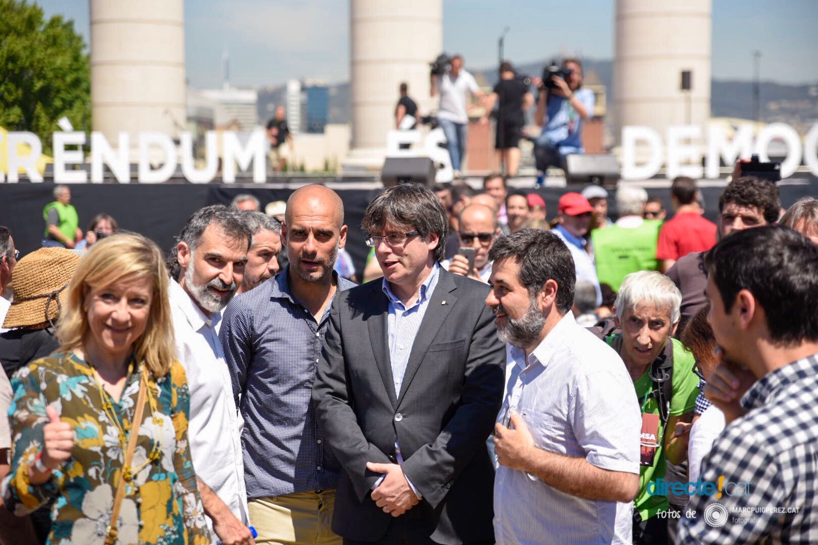 El manifest conjunt de l'ANC, Òmnium i l'AMI que ha llegit Guardiola en la concentració 'Referèndum és democràcia', l'ex tècnic i jugador del FC Barcelona ha recordat que Catalunya ha intentat votar fins a 18 vegades fer possible un referèndum pactat, totes amb la negativa frontal de l'Estat: “l'única resposta possible és simple, és votar”. L'entrenador ha fet una crida a mobilitzar-se contra la persecució política “impròpia” en una democràcia del segle XXI. Amb “un ministre de l'Interior que actua contra la sanitat catalana i amb unitats policials fent proves falses contra els representants independentistes”, a més, ha afegit, “d'inhabilitar el president que va posar les urnes el 9-N”.