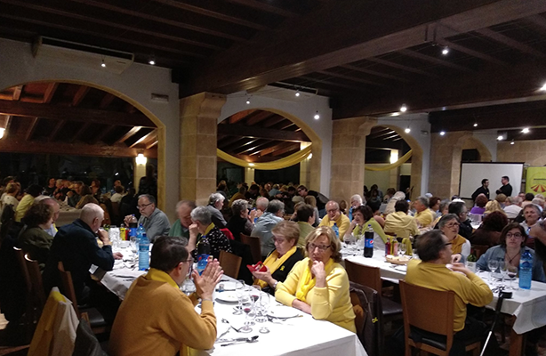 “Si ells no defalleixen, nosaltres no podem defallir”, ha dit, per agrair als assistents la seva ajuda a les famílies per sufragar part dels costos dels viatges des de Catalunya. “Això és bonic”, ha afirmat. També ha demanat seguir amb la lluita i no oblidar els repressaliats per l'Estat espanyol que estan convençuts que “no han fet res malament”. D'altra banda, ha intervingut al sopar groc el nebot de Jordi Cuixart, que ha assegurat fer d'altaveu del seu tiet per encoratjar els assistents a continuar reclamant la llibertat dels presos polítics.
