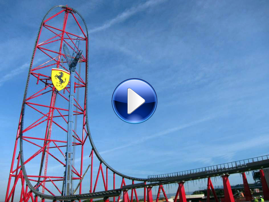 A tota màquina. El parc Ferrari Land, que estarà adjunt a Port Aventura i que tanta expectació està generant, està enllestint les tasques finals perquè tot estigui a punt per a la seva estrena aquest abril. De fet, ja es poden aconseguir entrades. directe!cat us ofereix un vídeo en exclusiva gentilesa d'Òscar Mayèutica, que ha gravat les proves que s'estan fent a la muntanya russa més alta d'Europa i la cinquena del món amb 112 metres d'altura i una velocitat màxima de 185 quilòmetres per hora, el que també la converteix en la primera més ràpida del vell continent.