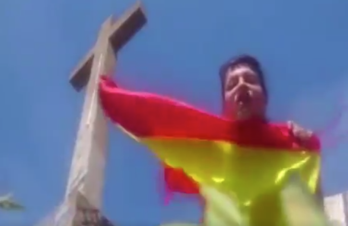 “Aunque hubiese sido verdad, yo hubiera llegado aquí y ya me hubiese ocupado de limpiar la cruz”, ha dit en veure que el monument seguia com sempre. Cosa que, amb tot, no li ha impedit gravar amb el mòbil -“bastante resistente, por si acaso me vuelvo a encontrar con un subnormal como vosotros”- un vídeo intimidador dirigit als independentistes. “A mi no me ha importado si era verdad o mentira, he subido hasta aquí. Y he subido sola hoy porque me ha dado, pero tengo como 20 detrás conmigo que hubiesen podido subir”, ha assegurat.