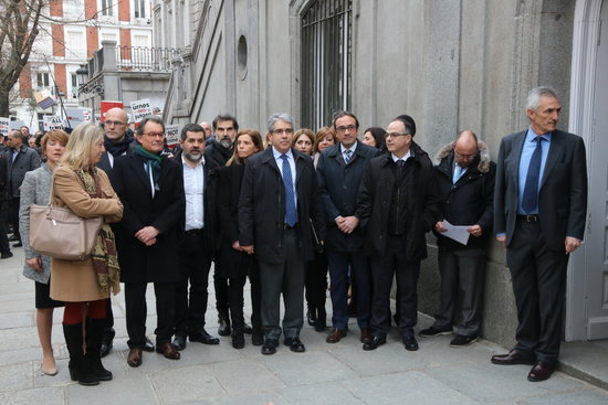 Al seu torn, la portaveu del govern català, Neus Munté, ha pronosticat que no serà l’última vegada que tocarà acompanyar dirigents polítics als tribunals. El diputat d’Esquerra Joan Tardà també ha interpretat de manera contundent l’esdeveniment: “Som ja instal·lats en l’escenari de la repressió judicial”. Mentrestant, Jordi Sànchez, Jordi Cuixart i Neus Lloveras han agraït el suport dels ciutadans que s’han desplaçat a Madrid per sumar forces.