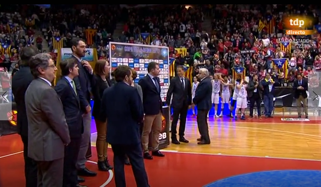 Quan el dirigent del PP i la resta d’autoritats van baixar al parquet per entregar els trofeus a les guanyadores i les finalistes, bona part del públic va reaccionar amb una escridassada. Ràpidament, però, van aflorar estelades per tota la graderia i els xiulets es van substituir per uns contundents crits d’independència. Mentrestant, Enric Millo es mirava la reclamació sobiranista des de la pista. A l’inici del partit, l’exdiputat popular havia piulat a Twitter que hi havia un “gran ambient a Fontajau” –el camp on es va disputar el partit–. També va penjar una fotografia a la llotja al costat de l’alcaldessa de Girona, Marta Madrenas, tot i que en la piulada només esmentava el president de la Federació Espanyola de Bàsquet i el director general del Consejo Superior de Deportes.