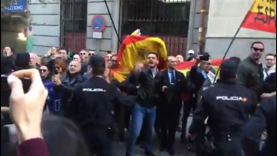 Moments de màxima tensió amb l'arribada d'Artur Mas l'Ateneo de Madrid, escenari d'un cara a cara del català amb l'exministre d'exteriors Juan Manuel García-Maragallo. Entre els convocants ultres hi havia membres identificats de la Falange i Alianza Nacional.