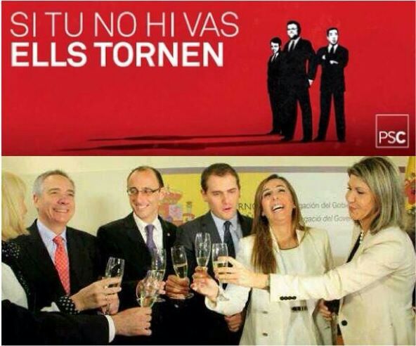 Llavors ens volien atemorir si no anàvem a votar, i ara perquè hi volem anar. Ahir feia servir el PP per espantar i avui brinda amb ells per acollonir-nos.