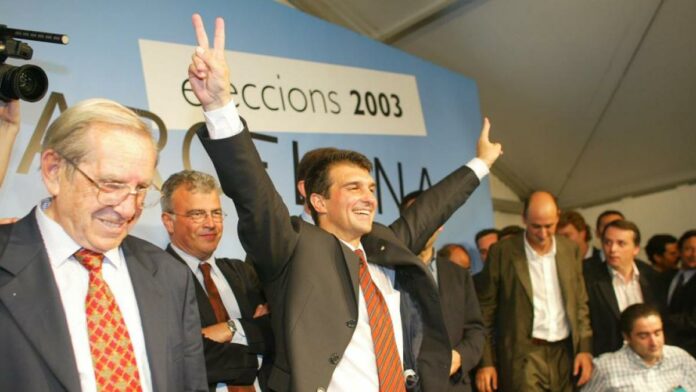 Després de la dimissió del president Joan Gaspart, a mitjans de febrer de 2003, i del president interí Enric Reyna, que també va dimitir del seu càrrec a principis de maig de 2003, una Comissió Gestora presidida per Joan Trayter es feu càrrec del Club i convocà eleccions. Les eleccions de l’any 2003 són recordades per la gran quantitat de candidats que van aspirar a ser presidents del Club, sis en total; Joan Laporta, Lluís Bassat, Jaume Llauradó, Josep Martínez-Rovira, Josep Maria Minguella i Jordi Majó, i per l’alt índex de participació dels socis barcelonistes: un 53,8%.