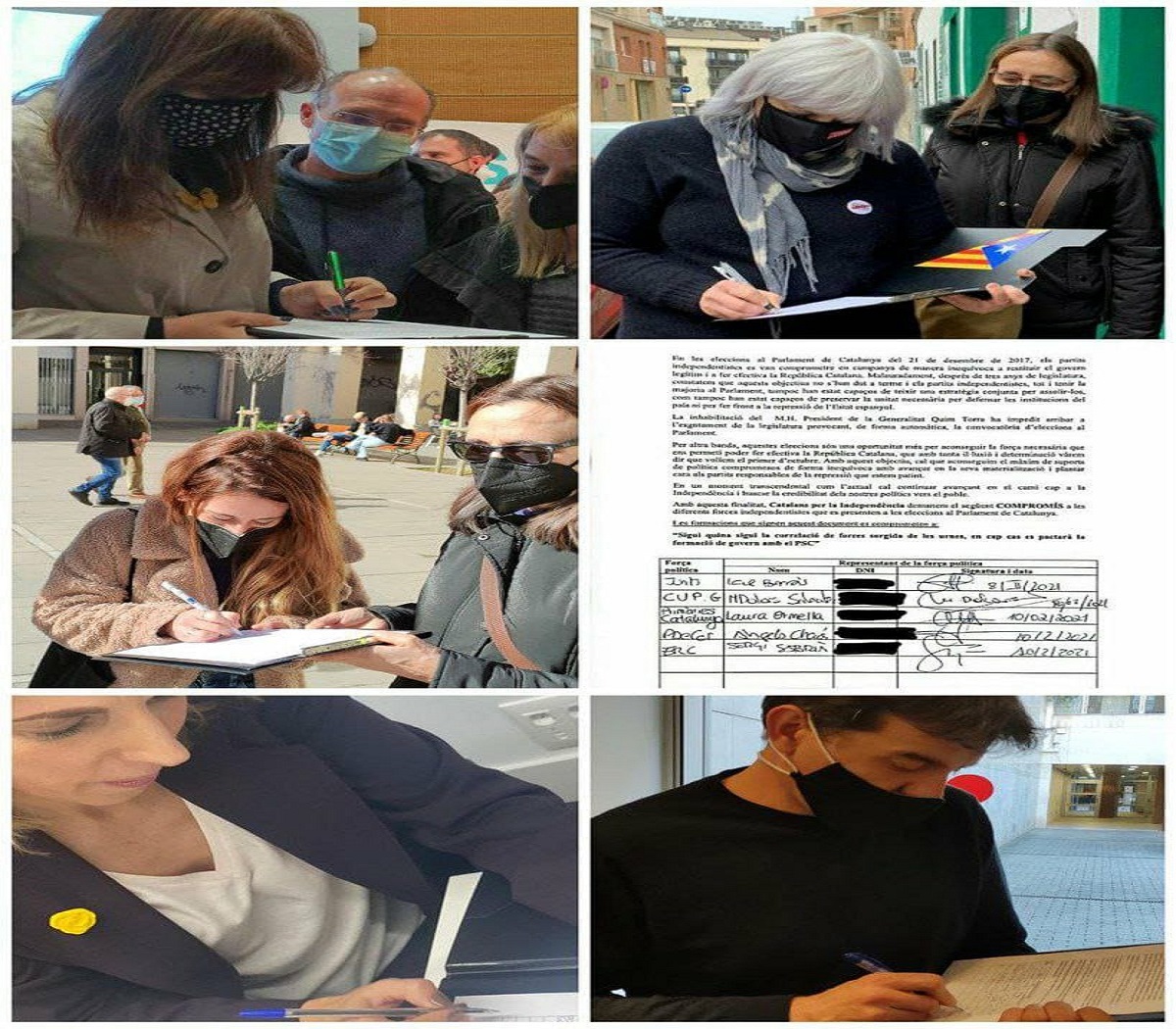 Les candidates de Junts per Catalunya, la CUP i el Partit Demòcrata de Catalunya, Laura Borràs, Dolors Sabater i Àngels Chacón respectivament, i el secretari de comunicació d’Esquerra Republicana de Catalunya, Sergi Sabrià, s’han compromès per escrit en nom de les seves formacions a no pactar govern amb el PSC després de les eleccions del 14 de febrer. A proposta de l’entitat Catalans per la Independència, els quatre representants polítics han signat un document que especifica que “sigui quina sigui la correlació de forces sorgida de les urnes, en cap cas es pactarà la formació de govern amb el PSC”. El text també compta amb la signatura de Primàries Catalunya.