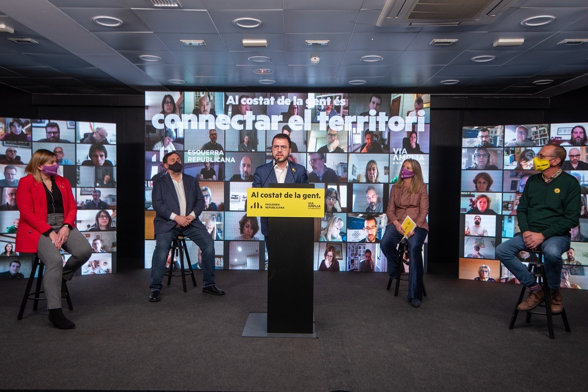 Per la seva banda, el presidenciable d’ERC, Pere Aragonès, ha reivindicat que ERC “no té més objectiu que salvar vides i llocs de treball, defensar la salut i reflotar l’economia”. Per fer-ho possible, ha reivindicat el paper del municipalisme i el Govern i ha opinat que conjuntament han de poder gestionar els fons europeus i tenir-hi un “paper clau”. El també vicepresident del Govern amb funcions de president ha destacat que cal “tenyir de groc” el Palau de la Generalitat el 14-F tal com es va fer amb els ajuntaments el 2019. Ha demanat una “majoria republicana àmplia” per fer de “forjadors d’acords amplis” per avançar en la república i la llibertat.