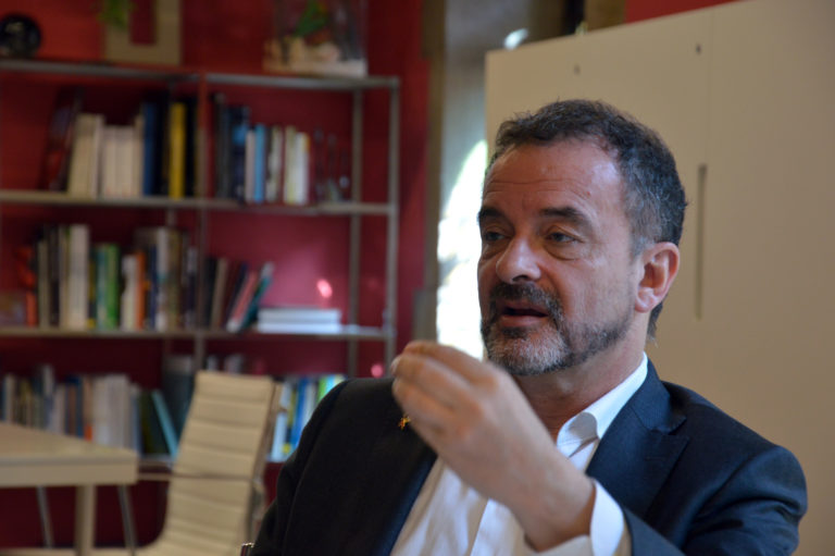 Alfred Bosch (Barcelona, 1961) és conseller d’Acció Exterior, Relacions Institucionals i Transparència des de fa vuit mesos però se segueix definint a ell mateix com a militant de base d’Esquerra Republicana de Catalunya. Un partit amb el qual ha ocupat diversos càrrecs des del 2011, quan -amb 50 anys- va entrar en política: ha estat diputat al Congreso i regidor de l’Ajuntament de Barcelona. De sobra coneguda és la seva admiració per Nelson Mandela, a qui va conèixer en persona l’any 1994 i sobre qui va escriure una tesi doctoral. Parla anglès i francès (com Josep Borrell), a més d’alemany, italià i portuguès i el pressupost del seu departament no arriba a l’1% de l’equivalent del ministeri d’Exteriors espanyol.