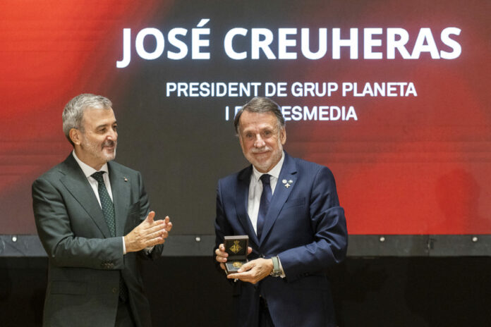 El president del Grup Planeta, José Crehueras, ha recollit aquest dimecres al vespre la Medalla d’Or de la Ciutat que l’Ajuntament de Barcelona ha atorgat a l’empresa. L’acte ha estat presidit per l’alcalde, Jaume Collboni, que ha destacat “la contribució al progrés social i cultural” de la firma. L’empresa compleix 75 anys i el batlle ha destacat l’esforç de Planeta “per fer gran Barcelona, més culta, més crítica i més bella i per portar el nom de la ciutat per tot el món”. El govern municipal va proposar la medalla al ple del juny passat. Una medalla d’or a una empresa vinculada i feta gran gràcies a la dictadura i amb el patiment de desenes d’impremtes de l’epoca.