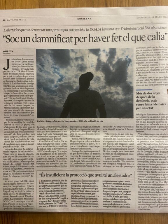 L’alertador, un educador social que va aportar proves (incloent gravacions), ha estat objecte de represàlies i ha rebut protecció limitada, segons ell mateix va denunciar en entrevistes i declaracions públiques. La seva veu, ara silenciada al principal diari de referència català, reforça la percepció d’una censura selectiva en temes que toquen el poder polític i econòmic. Aquest episodi no és aïllat: recorda altres retirades de continguts incòmodes en mitjans catalans per pressions no explicades (polítiques, econòmiques o legals). L’eliminació qüestiona seriosament la independència periodística i la llibertat d’expressió en un mitjà històricament vinculat als cercles de poder a Catalunya, i envia un missatge desincentivador als futurs alertadors que vulguin denunciar fraus en l’administració pública.
