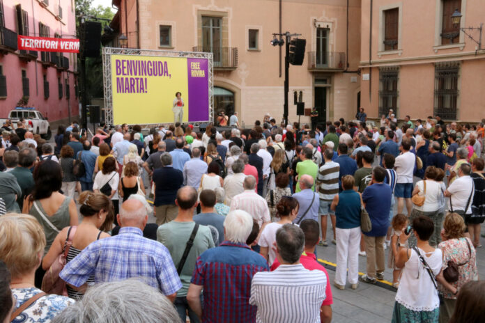 Centenars de persones van omplir aquest dissabte a la tarda la plaça de la Catedral de Vic per rebre Marta Rovira després de més de sis anys a Ginebra. Un gran ‘Benvinguda, Marta!’ va presidir l’escenari d’un acte en què amics i veïns van aplaudir el retorn de la secretària general d’ERC, un cop arxivada la investigació de la causa de Tsunami Democràtic. “L’exili t’ha robat moltes coses, però la ciutat t’ha estat esperant”, van ressaltar els regidors d’ERC a Vic. Al seu torn, la dirigent d’Esquerra va agraïr sistemàticament l’escalf dels vigatans, “que van ajudar a veure la llum des del primer dia a Ginebra”. Rovira va lamentar la “discrepància estèril” que viu l’independentisme i s’ha compromès a “fer possible l’entesa una altra vegada”.