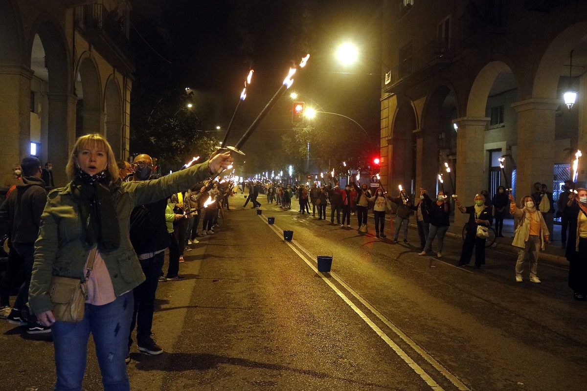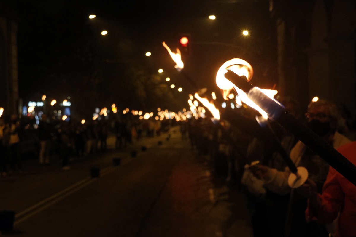 Centenars de persones convocades per la plataforma Girona Vota han encès torxes a Girona per reivindicar el llegat de l’1-O i reclamar la unitat de l’independentisme. S’han repartit al llarg de dues fileres a l’avinguda Jaume I per evidenciar el lema ‘Siguem l’espurna que encén la flama’. Abans de l’encesa, els advocats voluntaris que porten la querella col·lectiva per les càrregues de l’1-O han llegit un manifest instant a no defallir. “Ara no ens rendirem, com ara fa tres anys van fer les persones que van patir la violència policial als seus cossos”, recull l’escrit. El text també insta els partits a no excusar-se “amb diferències partidistes ni estratègies electoralistes” perquè és el poble “qui marca el camí a seguir”.