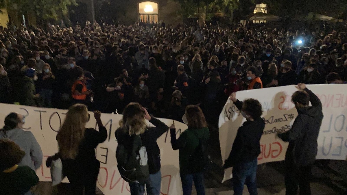 Pel que fa a l’altra manifestació, la que s’havia convocat per denunciar les mesures restrictives, ha tingut molt poca afluència. De fet, fins a l’arribada dels participants de la concentració de la plaça de la Catedral, pràcticament només hi havia la premsa.