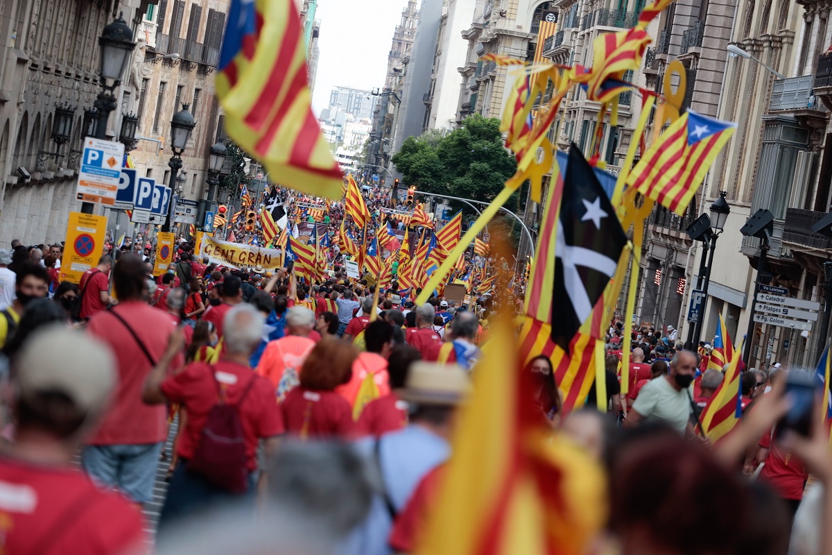 L’independentisme ha tornat als carrers per aquesta Diada amb una manifestació que ha reunit unes 400.000 persones, segons les dades de l’ANC. Els manifestants, amb banderes estelades i cartells amb missatges com ‘Hem guanyat’ o ‘Exigim la independència’, han recorregut Via Laietana avall fins arribar, passant pel Passeig Isabel II, a l’Estació de França. La protesta, sota el lema ‘Lluitem i guanyem la independència’, és la primera en què han pogut participar els presos indultats, i ha comptat també amb la presència del president Pere Aragonès i altres membres del Govern, així com la presidenta del Parlament, Laura Borràs. Un grup de manifestants s’ha aturat davant de la comissaria de la Policia Nacional a Via Laietana.