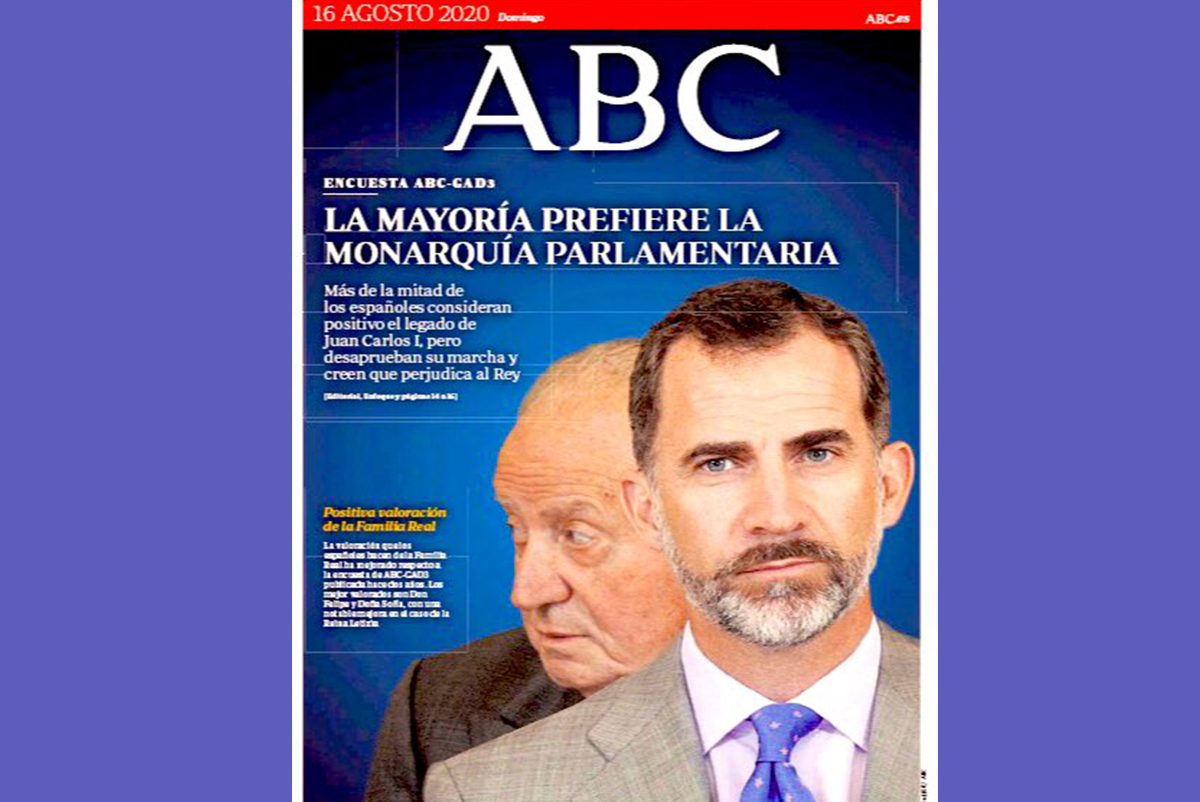 És el cap de setmana del mig d’agost i per no haver-hi moviment, ni tan sols hi ha les tradicionals festes majors i les orquestres de ball estan aturades. Aquesta laxitud, però, no pot ser excusa per empescar-se una portada manifestament falsa i manipuladora com la de l’ABC, que diu “La majoria prefereix la monarquia parlamentària”. La majoria? Quina majoria? D’on ho treuen això?. No cal dir que les xarxes n’estan fet mofa tot el dia.