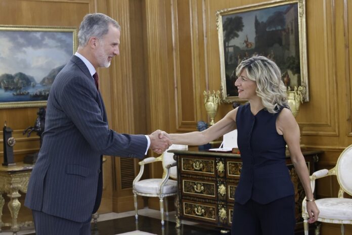 La líder de sumar, Yolanda Díaz, ha demanat “a totes les parts”, també a les formacions independentistes, “discreció i responsabilitat” per poder tirar endavant “una agenda social i també una territorial”. Ho ha fet en roda de premsa al Congrés després d’assistir a la ronda de consultes del rei Felip VI. La líder de Sumar ha transmès al monarca que la seva formació aposta per un govern progressista presidit per Pedro Sánchez, però ha recordat també que les dues formacions es troben en procés de negociació i encara estan “lluny de l’acord”.