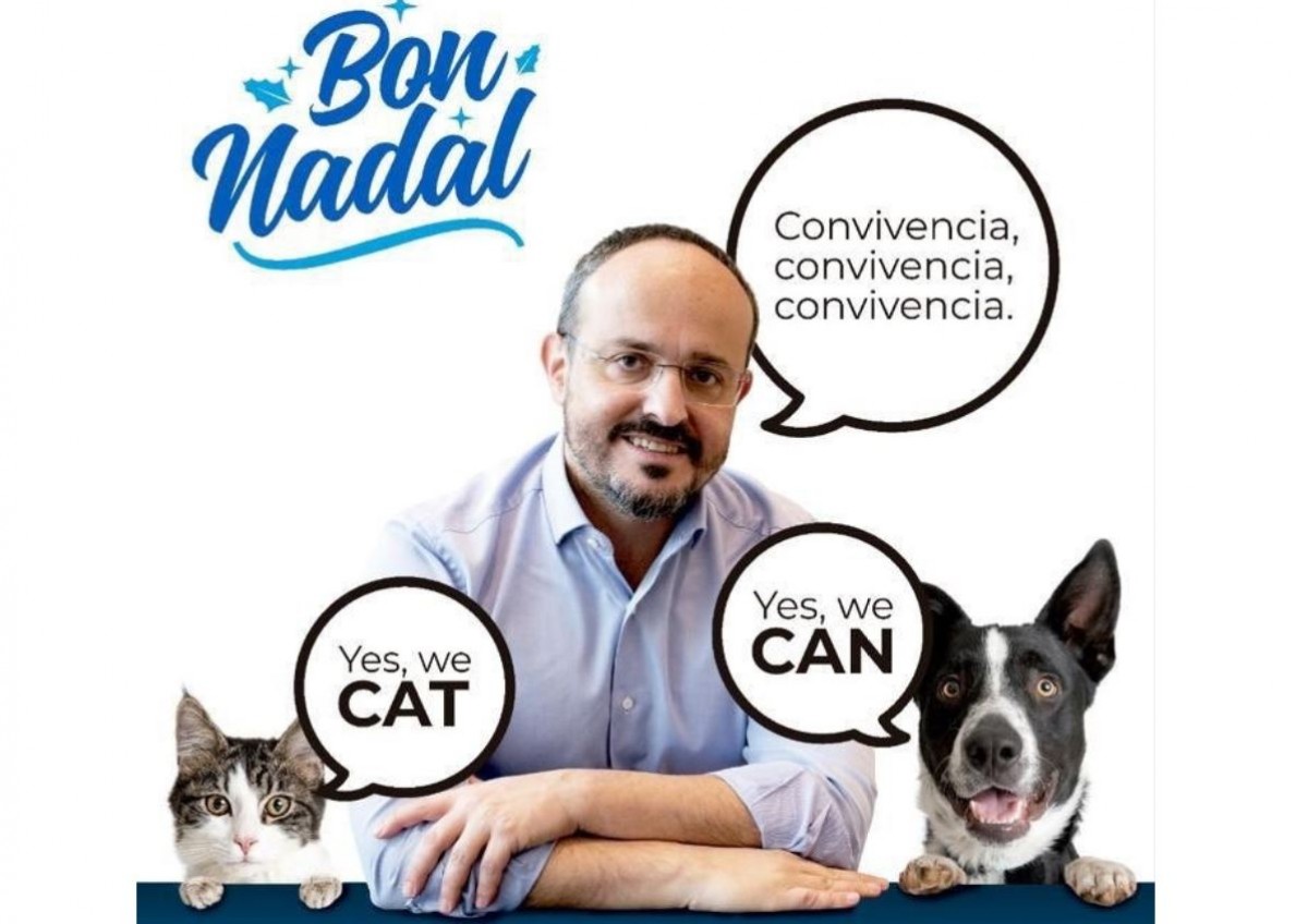 Serrano ha afirmat que és una felicitació especial i diferent però amb una gran càrrega simbòlica, perquè per ell els catalans fa “massa temps que tenen enfrontaments estèrils”. La campanya pretén ser humorística ja que en el cartell de la campanya hi apareix el president del PP català, Alejandro Fernández, al centre amb el lema ‘convivència, convivència, convivència’ i al seu costat un gos que diu ‘yes, we can’ i, a l’altre, un gat amb la consigna ‘yes, we cat’, com a símbol de la voluntat del PP d’assolir més convivència i concòrdia entre els catalans, i no estar “com gat i gos”.