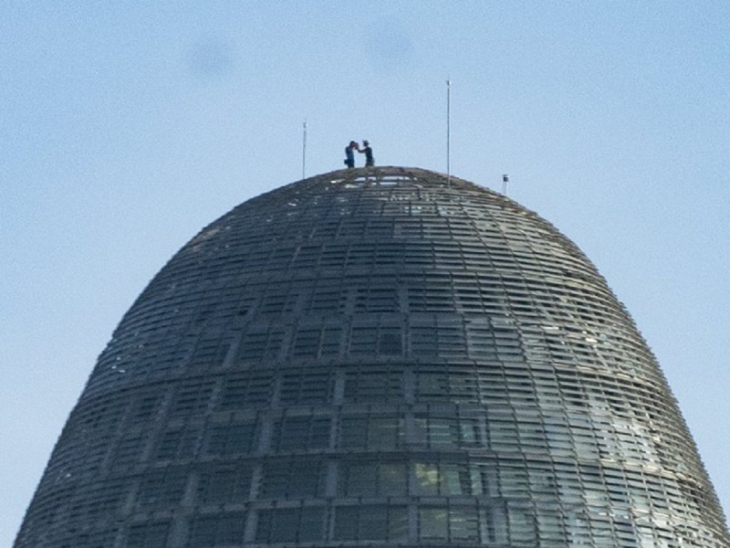 Dues persones han escalat la Torre Glòries de Barcelona aquest dissabte a les dues del migdia. La Guàrdia Urbana i els Bombers han acordonat la zona i han desplegat efectius pels carrers contigus, una imatge que ha generat molta expectació entre els ciutadans, que han penjat diversos vídeos a les xarxes socials. Els Mossos d’Esquadra els han pres declaració després que hagin coronat l’edifici, de 144 metres d’alçada i 34 plantes. Fonts de la policia catalana indiquen que l’ascens no respondria a cap motivació reivindicativa.